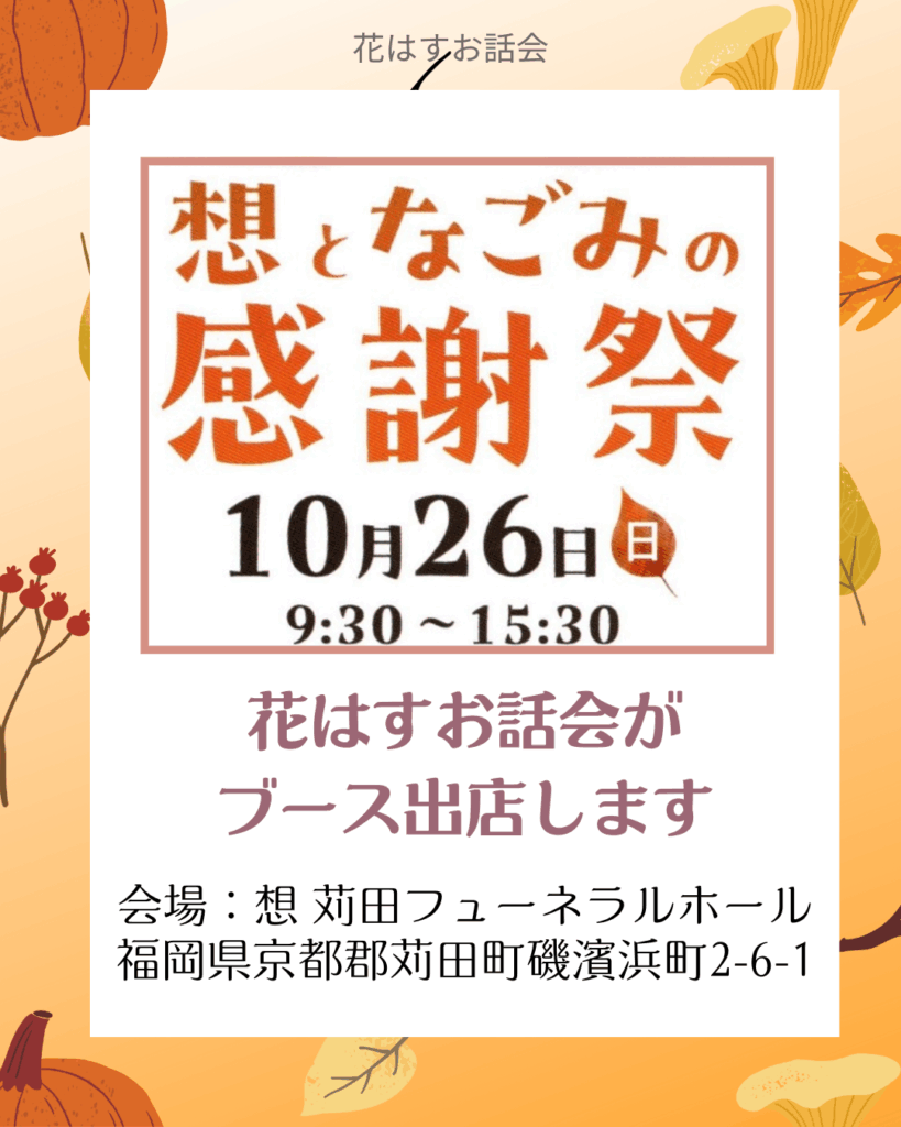 10月26日(日)、「想となごみの感謝祭」に花はすお話会として初めてブース出店します。