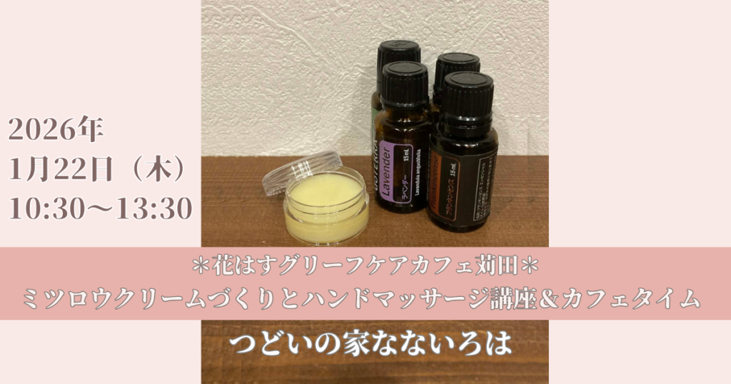 ミツロウクリームづくりとハンドマッサージ講座&カフェタイムのお知らせ-2026年1月の花はすグリーフケアカフェ苅田