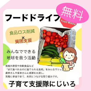 農家さんや事業者さんに感謝を込めて、必要な人へバトンをつなぐ取り組みです。