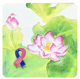 ・ピンク&ブルーリボンのピンバッジやポストカードなどの販売